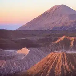 Réveil à 3h du matin pour l’ascension du Mont Bromo (2 329 m). Tout d’abord vous grimperez dans un 4×4 pour arriver en haut du volcan Penajakan à 4h30 pour admirer le lever du soleil sur les volcans (attention température très fraiche). Puis vers 6h00 du matin, vous remonterez dans le 4×4 direction le pied du volcan Bromo. Il sera alors temps de traverser l’immense caldeira et sa mer de sable en Jeep.