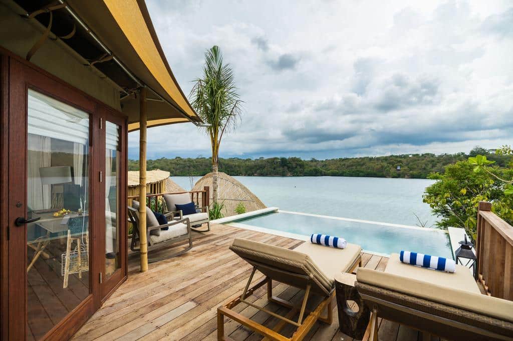 Situé à Pemuteran, au nord-ouest de Bali, le Menjangan Dynasty Resort est installé au bord de la plage et possède une piscine avec vue sur mer. Il offre un accès à un parking privé et à une connexion Wi-Fi.Tous les hébergements du Menjangan Dynasty Resort sont somptueux et dotés d’un mobilier haut de gamme. Les villas sont équipées de la climatisation, d’une télévision à écran plat, d’un plateau bouilloire, d’un minibar et d’un coffre-fort. Chaque hébergement dispose également d’une piscine à débordement privée et d’une salle de bain avec jacuzzi.Sur place vous pourrez profiter du bar-restaurant, le Pasir Putih Beach Club sert des cocktails et une cuisine internationale. Le restaurant propose également petit-déjeuner et goûter qui peuvent être dégustés sur place ou dans votre villa grâce au service d’étage.Le Pasir Putih est le spa de l’hôtel. Vous pourrez vous relaxer dans ses cabines privées, sur sa terrasse de réflexologie, et sur le pavillon de bambou où ont notamment lieu les séances de yoga.La région est connue par les amateurs de plongée avec tuba ou de plongée sous-marine. Vous pourrez prendre des cours et organiser une sortie auprès du centre de plongée 5 étoiles du complexe. le Menjangan Dynasty Resort organise également des sorties observations des oiseaux, des balades en VTT ou à vélo, des randonnées et des excursions à la journée dans les lieux d’intérêt de la région.L’établissement se situe à exactement 3 kilomètres de Pemuteran. Pour rejoindre l’aéroport international Ngurah Rai, situé à 150 km de votre hébergement, il faudra compter 4 heures de route.