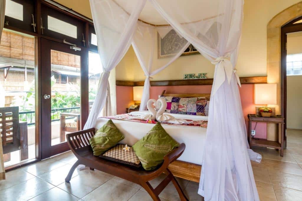 La maison compte une quinzaine de chambres seulement, de la Standard à la Deluxe, en décor balinais simple : meubles en bois, sols carrelés, textiles locaux. Toutes offrent climatisation ou ventilateur (selon catégorie), salle de bain privative, balcon ou terrasse, Wi‑Fi gratuit, et un espace suffisamment confortable pour des séjours de plusieurs nuits ; certaines chambres sont plus proches de la piscine et du restaurant, d’autres plus en retrait pour davantage de tranquillité. Les avis insistent sur la propreté, les lits confortables et l’atmosphère intime plutôt que sur le luxe ou le design contemporain.