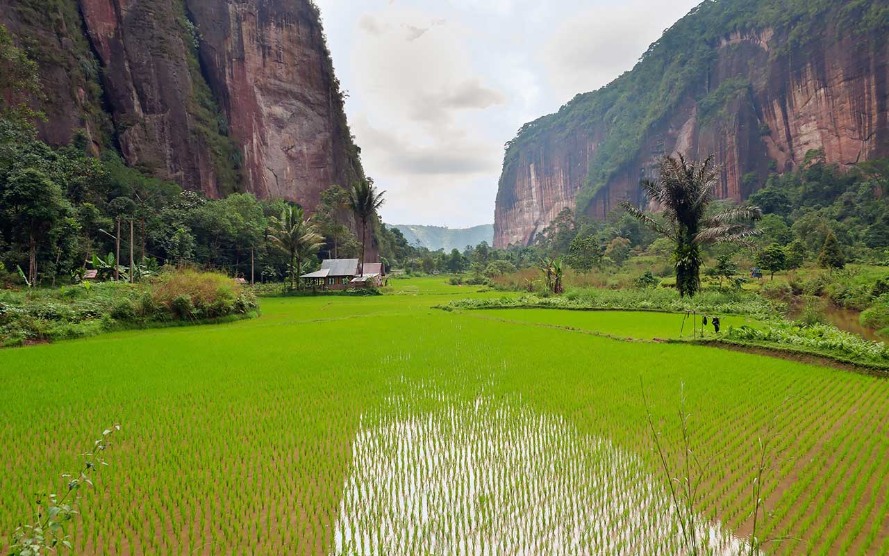La vallée d’Harau procure à tous ceux qui la visite un séjour de détente dans un cadre magnifique et pittoresque au cœur du Sumatra occidental en Indonésie. Harau signifie « rauque ». Le nom de la vallée tire son origine des catastrophes naturelles comme les inondations qui ont eu lieu dans la vallée. Lors de ces dernières, les habitants effrayés se mettaient à crier et à force leur voix devenait rauque.Le granit coloré qui s’élève jusqu’à 500 mètres de hauteur entoure la vallée et ses terres fertiles. Au fil des siècles différentes curiosités naturelles et captivantes se sont formées au sein de la vallée. On peut notamment observer des cascades splendides avec parfois de superbes piscines naturelles. Les falaises et les rizières verdoyantes sont d’autres paysages à couper le souffle qui font de la vallée d’Harau une destination impressionnante.
